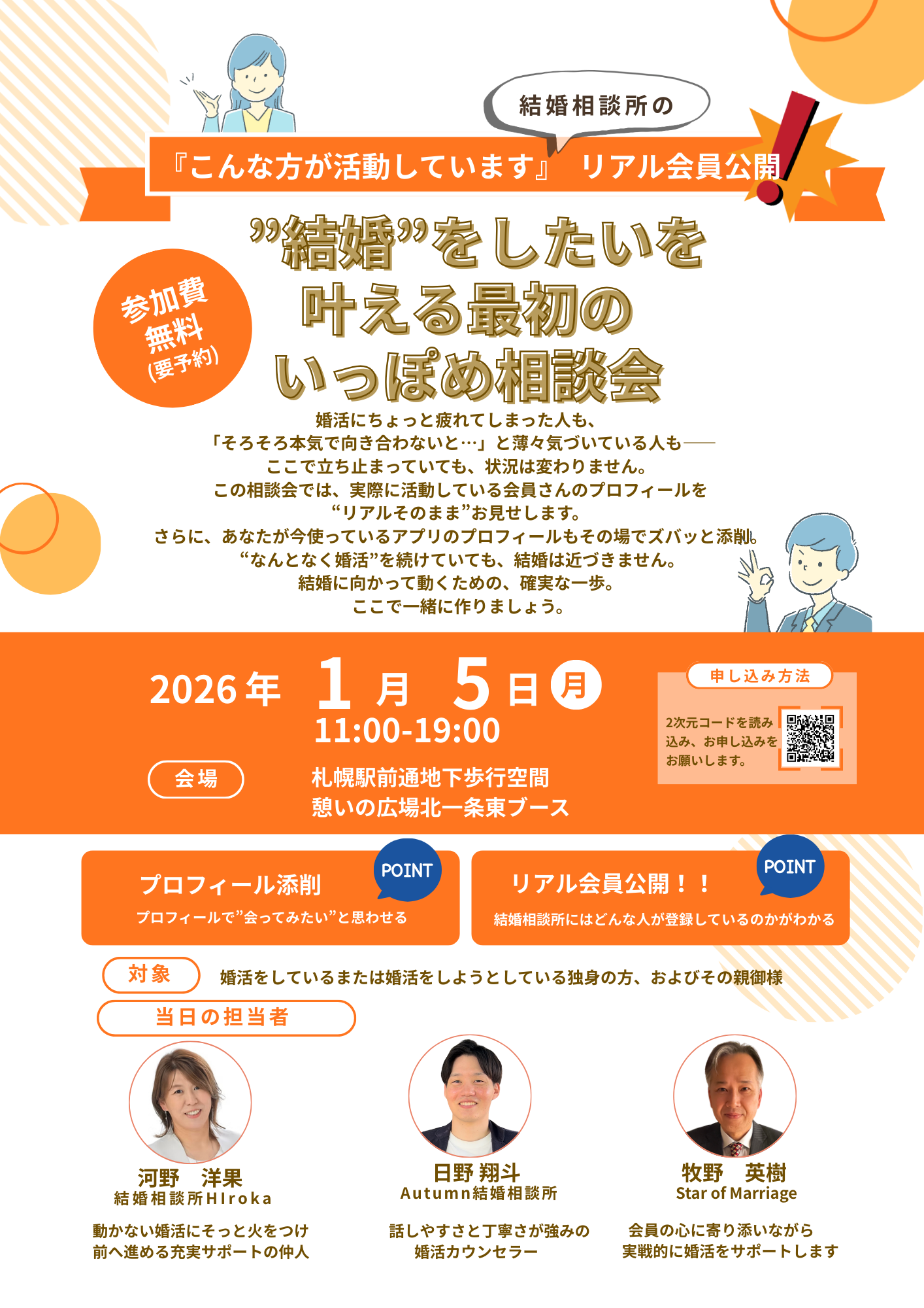 札幌駅地下歩行空間にて結婚相談所3社合同無料相談会を行います